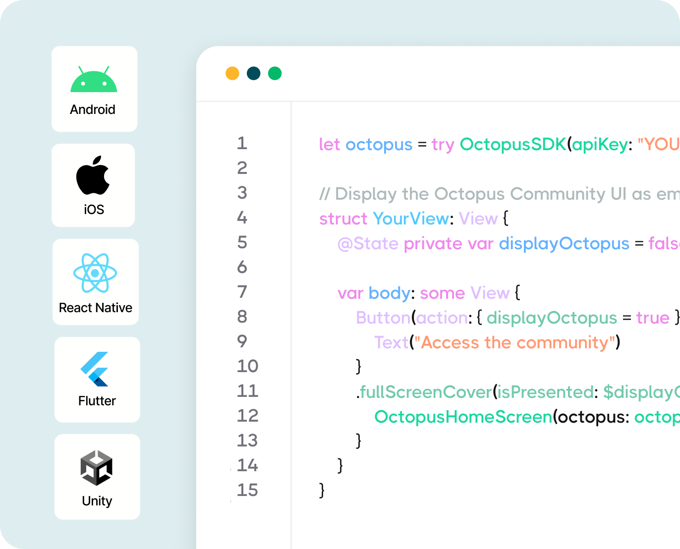Octopus SDK plugs into your app with zero friction. From integration to launch, you’re just a few simple steps away from a live, thriving community.