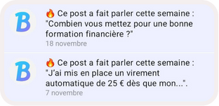 Bankin’ sends weekly notifications to spotlight trending discussions or featured posts. The impact is immediate: +122% in community views, a 3× increase in comments on highlighted content, and a powerful way to re-engage dormant users